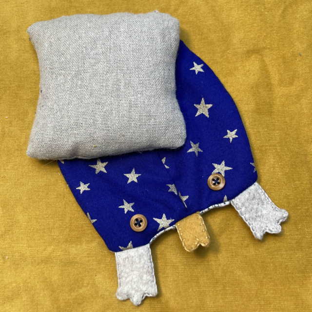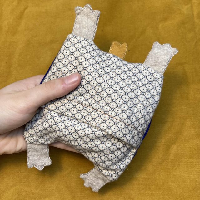 - La housse est réalisée en tissus de récupération et feutrine.