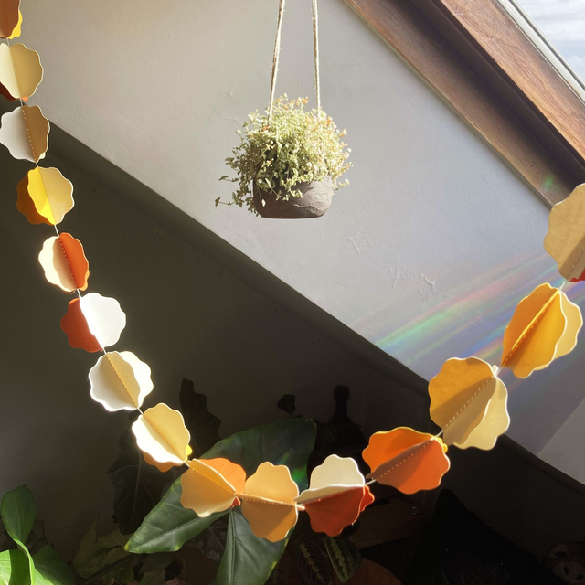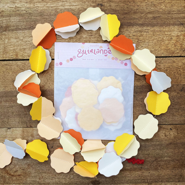 - Une fois la guirlande déballée, plier délicatement les disques de papier comme sur la photo pour donner plus de dimension à la guirlande.