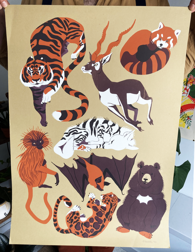- Les huit animaux sont le tigre du Bengale, le grand koudou, le panda roux, l'hyène rayée, le langur doré, la roussette géante, la panthère de l'Amour et l'ours noir d'Asie.